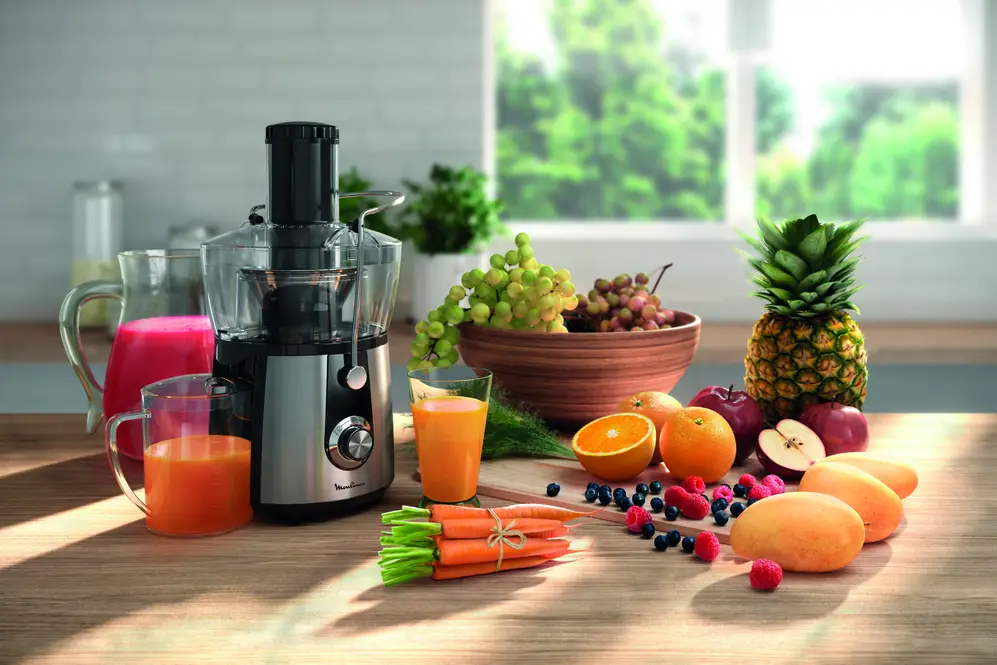 - Réservoir transparent à pulpe de 1,4 l pour vérifier facilement le niveau de remplissage.